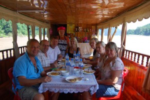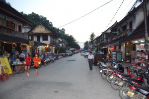 Endlich wieder einmal ausschlafen, Frühstück um 9.00 Uhr. Denise hat Geburtstag! Um 10.00 Pick up im Hotel eine Stunde fahrt zum Flughafen, unser Flug ist pünktlich und wir kommen um 14.00 Uhr in Luang Prabang (Laos) an. Wo ist unser Chauffeur, ich glaube wir wurden vergessen. Wir besorgen uns ein Taxi und fahren zum Hotel. Dort angekommen schaute der Hotelier uns mit grossen Augen an, tatsächlich wir wurden vergessen! Zum Glück hatte es noch 4 freie Zimmer frei. Luang Prabang ist eine kleine gemütliche Stadt, viele Backpacker und sonst noch wenig Tourismus. Abendessen in einem gemütlichen Restaurant im Garten, wir feiern noch ein bischen Geburtstag. Es fand ein Nachtmarkt statt, den wir nach dem Nachtessen besuchten.