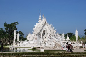 Am Morgen geht die Fahrt von Chiang Rai nach Chiang Mai. Nach ein paar Kilometer sehen wir den weissen Tempel. Wow!