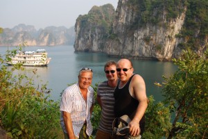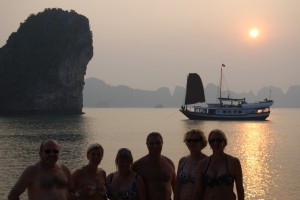 Auf dem Schiff wurden wir mit einem gediegenen Nachtessen überrascht. Geankert wurde in den berühmten Felsen der Halong - Bucht. Noch ein Cocktail und wir schlafen in unseren kuscheligen Oberdeck-Kabinen wunderbar.